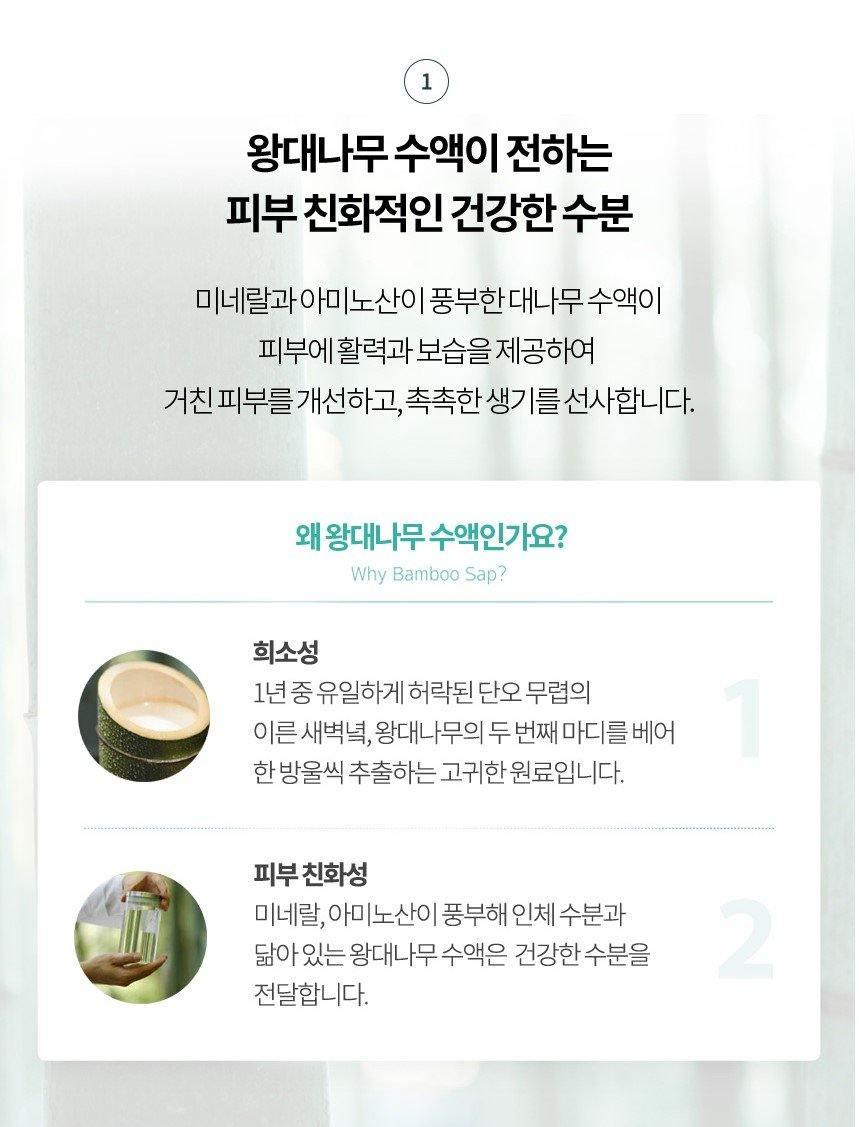 Thân thiện với làn da, cung cấp độ ẩm lành mạnh chiết xuất từ thành phần nhựa của cây tre Hàn Quốc.