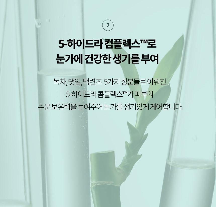 Mang lại sức sống trẻ hóa cho làn da mắt gồm 5 thành phần: trà xanh, lá tre, giúp tăng cường giữ ẩm cho vùng da mắt trở nên đầy sức sống.