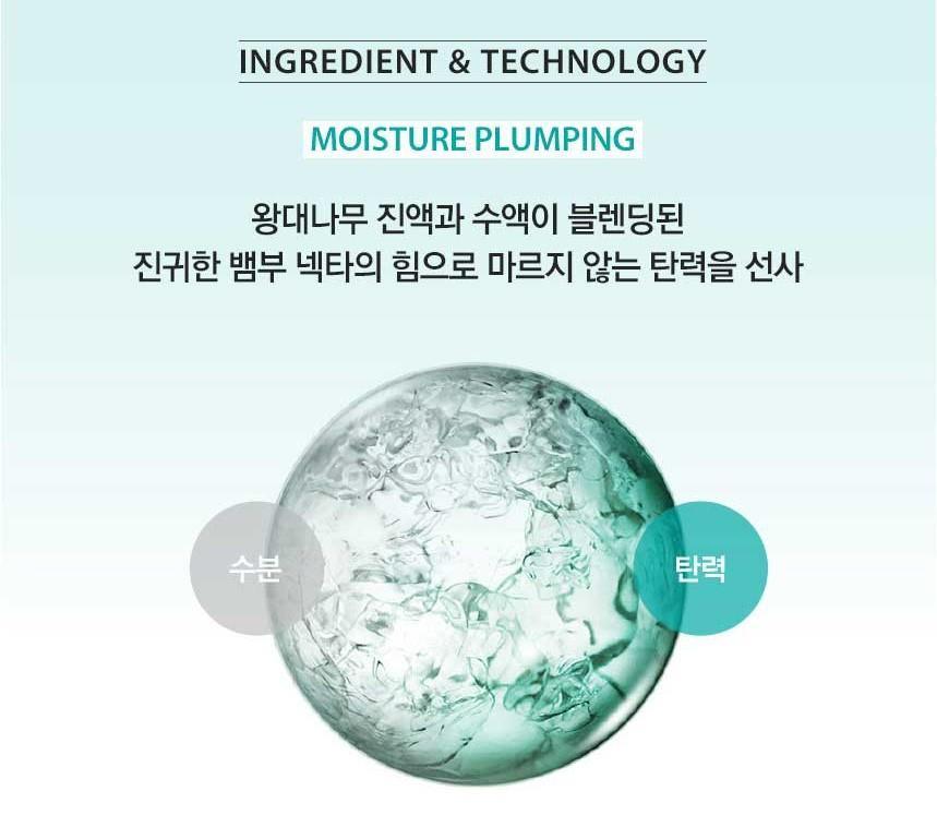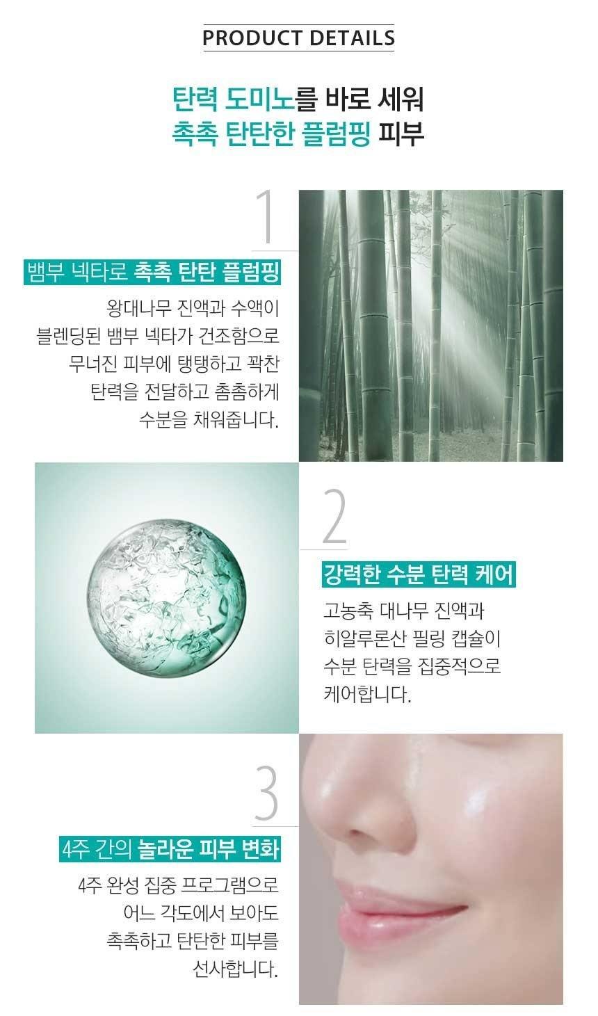 Tinh chất tre đậm đặc cùng Axit Hyaluronic chăm sóc cho độ ẩm đàn hồi của da lão hoá và bị ảnh hưởng bởi môi trường khói bụi.