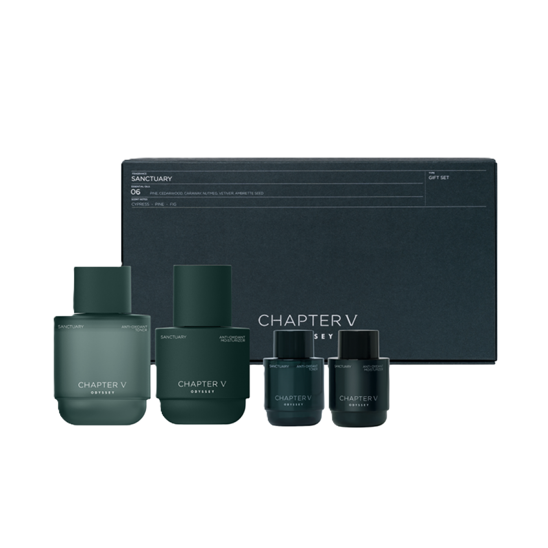 Odyssey Chapter V Anti-Oxidant Sanctuary Gift Set là sự kết hợp tinh tế giữa chăm sóc da chuyên sâu và trải nghiệm giác quan thuần khiết. Được phát triển bởi thương hiệu CHAPTERV, bộ sản phẩm mang đến hành trình chăm sóc da chậm rãi, sâu sắc, lấy cảm hứng từ sự tĩnh lặng và kết nối nội tâm.