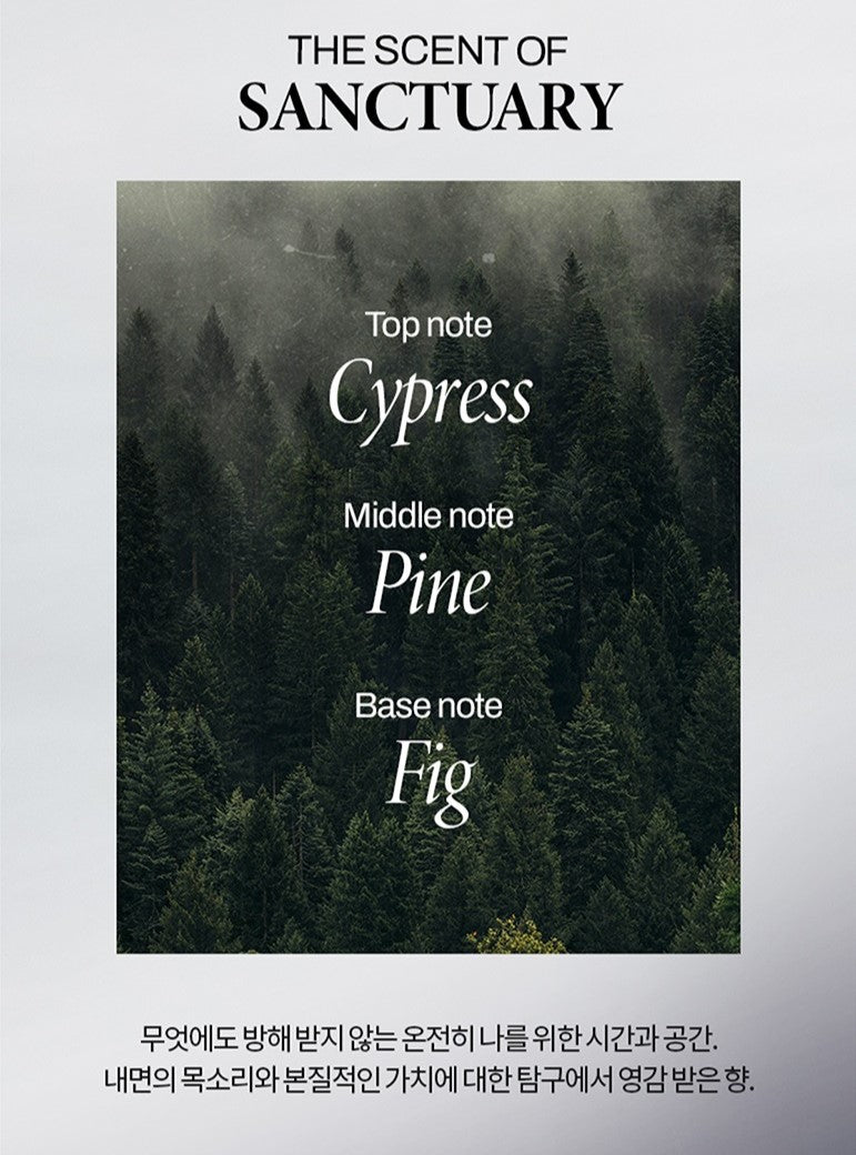 Mùi hương Sanctuary mang đến cảm giác như được bước vào khu rừng xanh mát, nơi bạn có thể ngắt kết nối với thế giới bộn bề và thực sự tập trung vào bản thân. Không chỉ chăm sóc da, mỗi lần sử dụng còn là một buổi thiền nhẹ nhàng cho tâm trí.