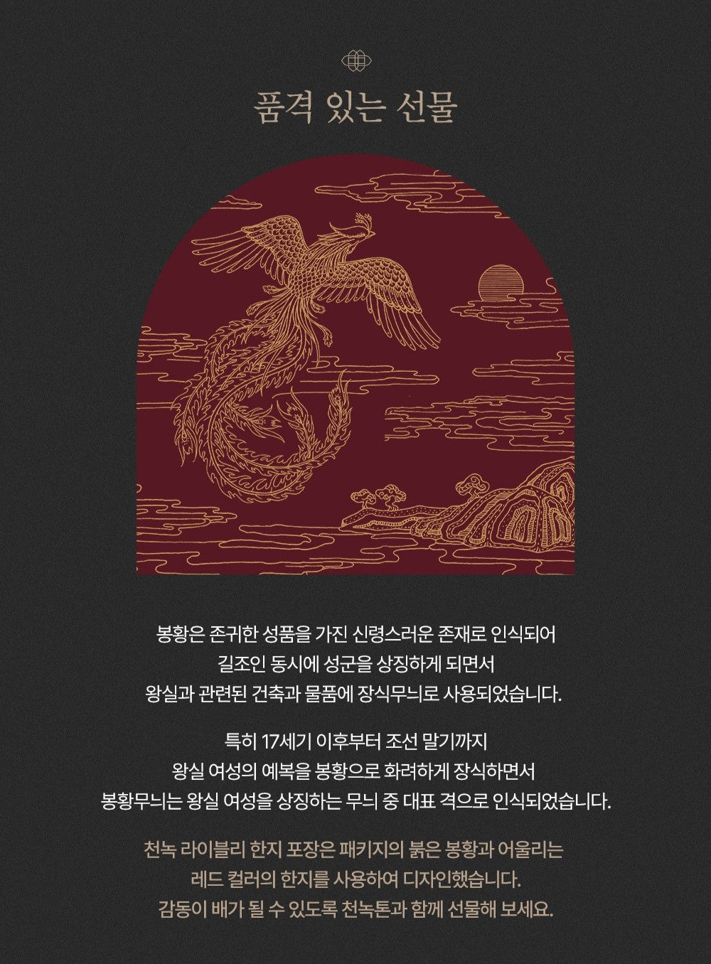 Sản phẩm được đóng gói trong hộp Hanji (giấy truyền thống Hàn Quốc) với thiết kế được làm mới tinh tế, phù hợp làm quà biếu cao cấp cho người thân, đối tác trong các dịp đặc biệt như lễ Tết, trung thu hoặc kỷ niệm. Mỗi gói nhỏ 70ml được đóng sẵn, tiện lợi để mang theo và sử dụng mọi lúc, mọi nơi mà không cần pha chế.