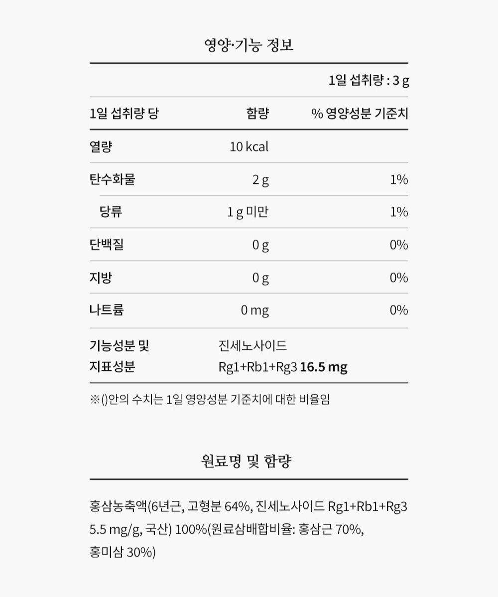 Thành phần gốc sâm: 100% hồng sâm rễ chính (hongsamgeun – 홍삼근)