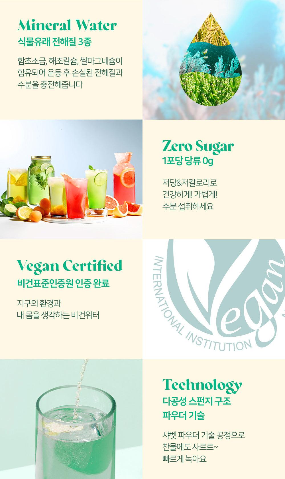 #Sparkling: Citric acid, polydextrose, sodium bicarbonate, DL-malic acid, green tea extract powder (India), apple juice powder (Poland), mango juice powder (mango puree (Philippines)), natural flavor (lime powder scent), lemon concentrated powder , sucralose (sweetener), elderberry extract, lemon flavor mixture (dextrin, natural flavoring, gum arabic, citric acid, pectin, trisodium citrate), safflower yellow mixture (dextrin, safflower yellow, gardenia blue), apple mint Fragrance mixture (gum arabic, dextrin, natural flavor, synthetic flavor), seaweed salt, water-soluble seaweed calcium, fermented rice powder