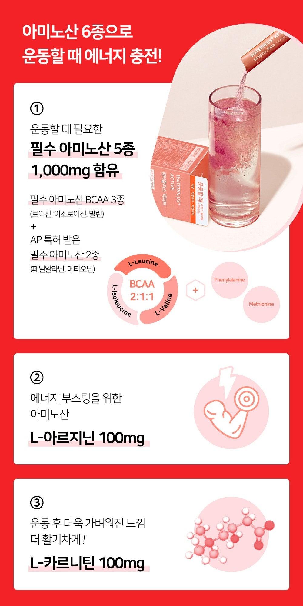 #Active: Citric acid, amino acid mixture BCAA (L-leucine, L-isoleucine, L-valine, lecithin), seaweed salt (sun-dried salt, extract of Tungtungmardi) (domestic), water-soluble seaweed calcium (edible seaweed powder, citric acid, - DL-malic acid, Glycerin fatty acid ester) (UK), grapefruit flavor mixture (dextrin, gum arabic, natural flavor, synthetic flavor, alcohol, triacetin), hibiscus extract (Germany), grapefruit concentrated powder, fermented rice powder, L-arginine , L-carnitine, sucralose (sweetener), L-phenylalanine, mango flavor mixture (dextrin, gum arabic, synthetic flavor), L-methionine, guar gum