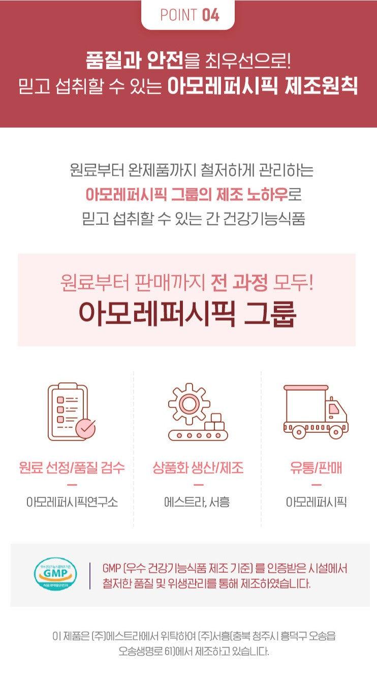 Nguyên tắc sản xuất của Amorepacific có thể yên tâm tiêu dùng, đặt chất lượng và an toàn lên hàng đầu, toàn bộ quá trình từ nguyên liệu đến bán hàng. Lựa chọn kiểm tra chất lượng nguyên liệu thô tại Trung tâm R&D Amorepacific, thương mại hóa sản xuất chế tạo Aestura được sản xuất thông qua quản lý vệ sinh và chất lượng kỹ lưỡng trong một cơ sở được chứng nhận đạt tiêu chuẩn GMP (Tiêu chuẩn sản xuất thực phẩm chức năng tốt cho sức khỏe), phân phối và bán hàng bổi Amorepacific.