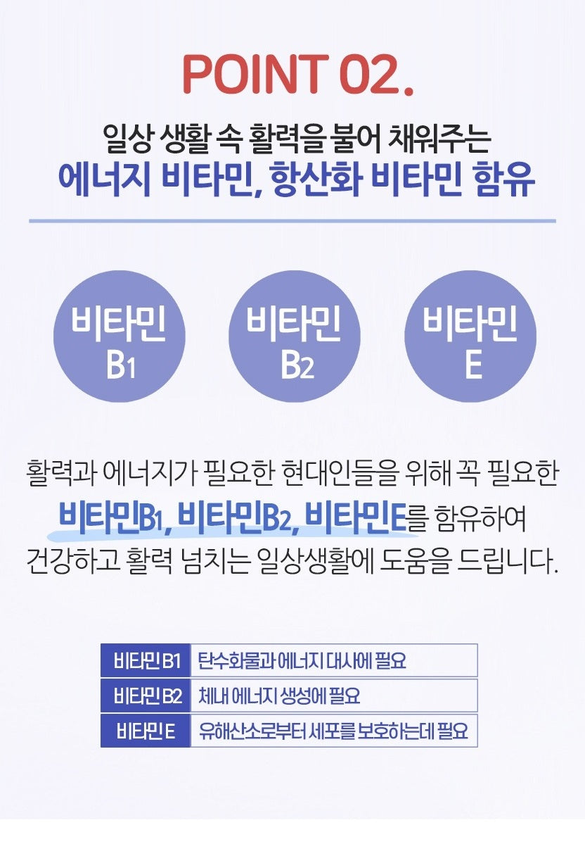Thành phần vitamin B1 và B2 giúp cơ thể sản xuất năng lượng ổn định, giảm tình trạng kiệt sức sau một ngày dài làm việc.