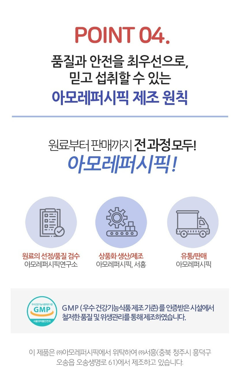 Sản xuất theo tiêu chuẩn GMP với quy trình kiểm soát chất lượng nghiêm ngặt từ Amorepacific.
