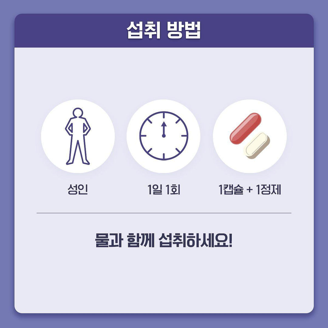 Liều dùng: Mỗi ngày 1 lần, uống 1 viên nang mềm (màu nâu đỏ) và 1 viên nén (màu vàng nhạt).