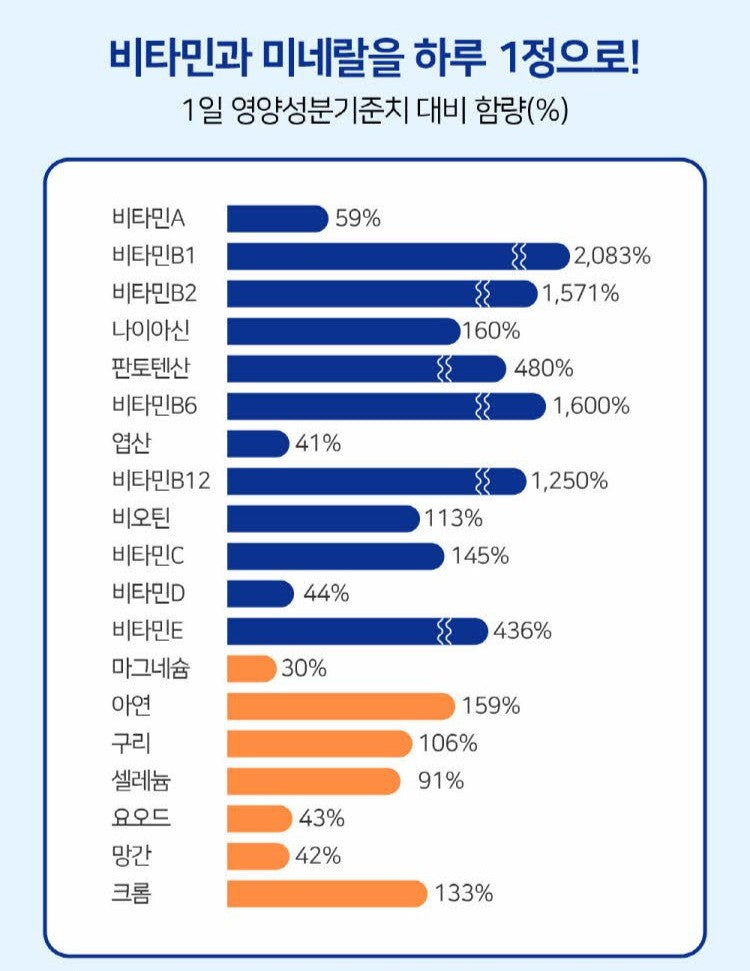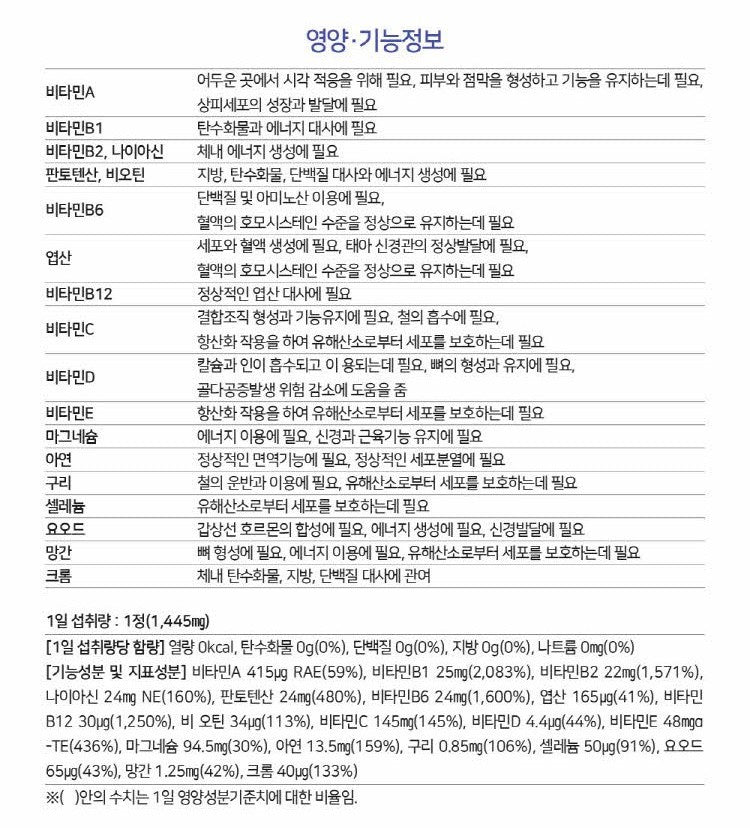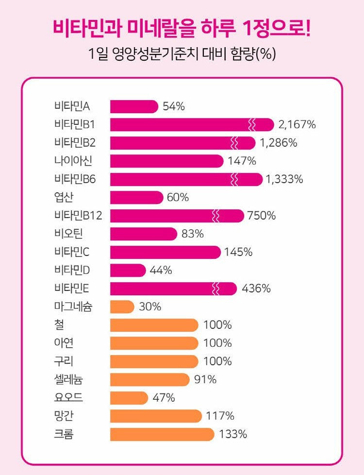 Sản phẩm chứa tổng hợp 22 loại vitamin và khoáng chất quan trọng, trong đó bao gồm: