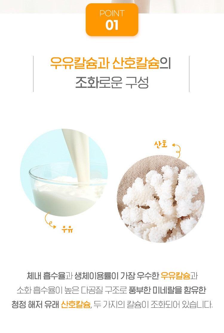 Canxi sữa với tỷ lệ hấp thu và khả dụng tốt nhất trong cơ thể, có cấu trúc xốp với tỷ lệ tiêu hóa và hấp thụ cao và chứa nhiều khoáng chất. Canxi từ san hô có nguồn gốc từ đáy biển sạch, hai loại canxi được kết hợp hài hòa