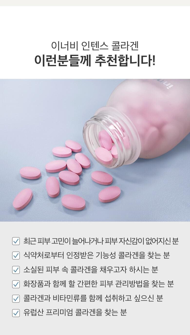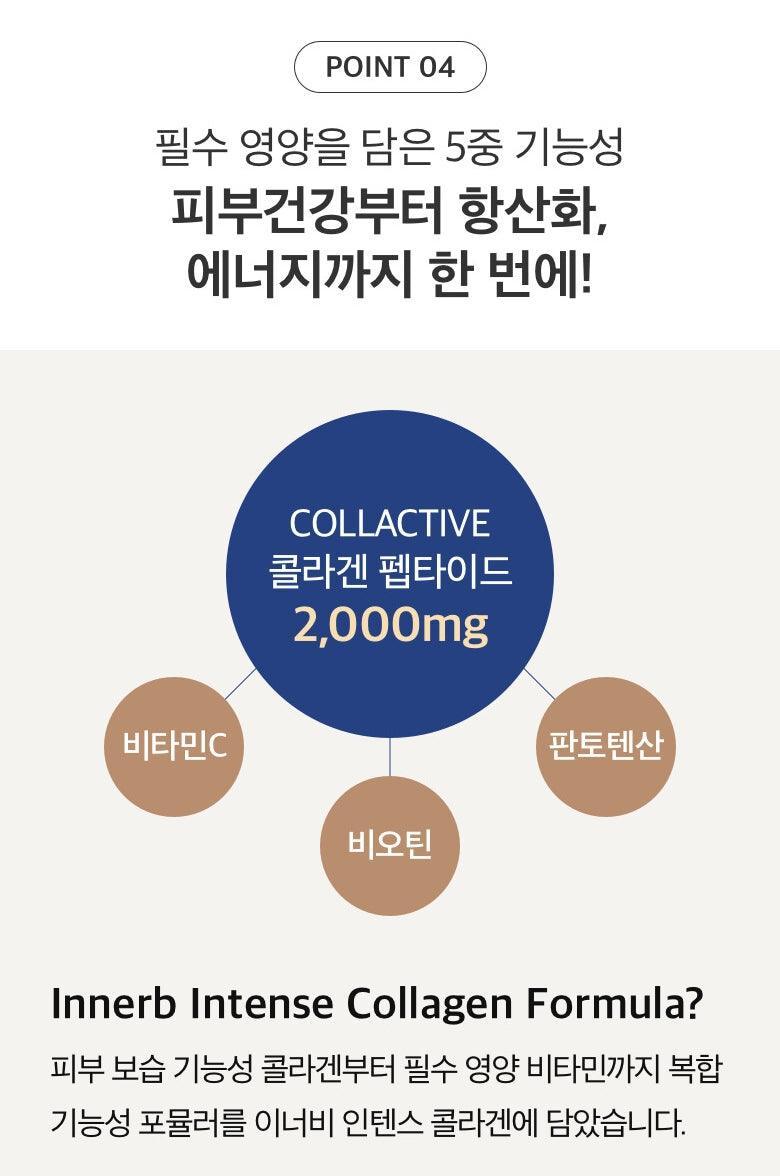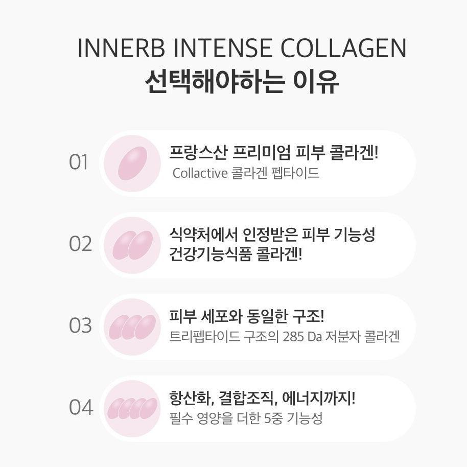 Viên Uống CJ InnerB Intense Collagen chiết xuất collagen dưỡng da cao cấp của Pháp giúp chống oxy hóa, mô liên kết và cung cấp dinh dưỡng thiết yếu gấp năm lần.