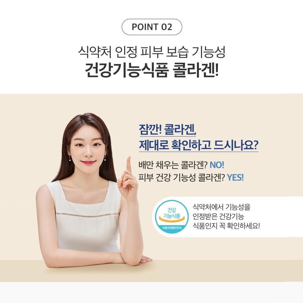 Collactive collagen peptide (France/collagen peptide, citric acid, peppermint flavor), vitamin C, pantothenic acid, biotin mixed powder (biotin, dibasic calcium phosphate), dextrin, milk calcium (New Zealand), crystalline cellulose, hydroxypropylmethyl cellulose, stearic acid Magnesium, titanium dioxide (colorant), mixed formulation (glycerin fatty acid ester, propylene glycol, citric acid), corn protein extract (USA), mixed formulation {dextrin, carmine (colorant)}, hyaluronic acid, rosemary leaf powder.
