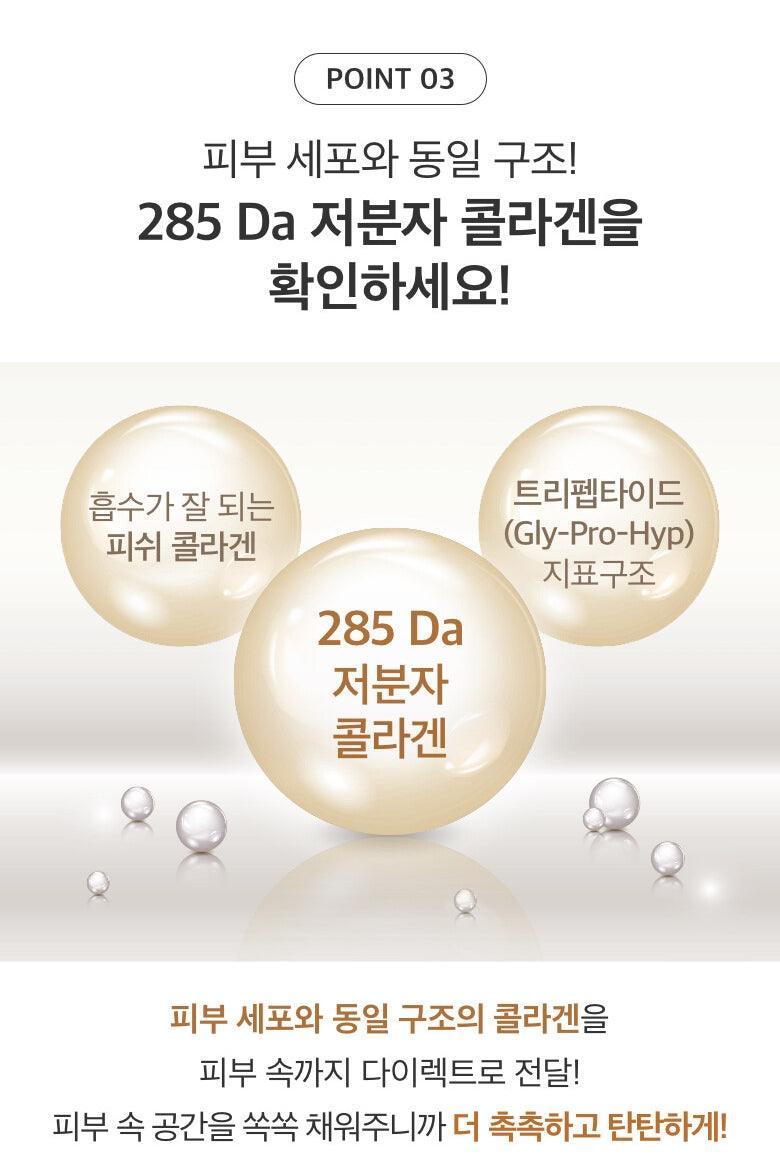 Chứa 285 Da collagen trọng lượng phân tử thấp. Cấu trúc chỉ thị tripeptide (Gly-Pro-Hyp) Collagen cá hấp thụ.