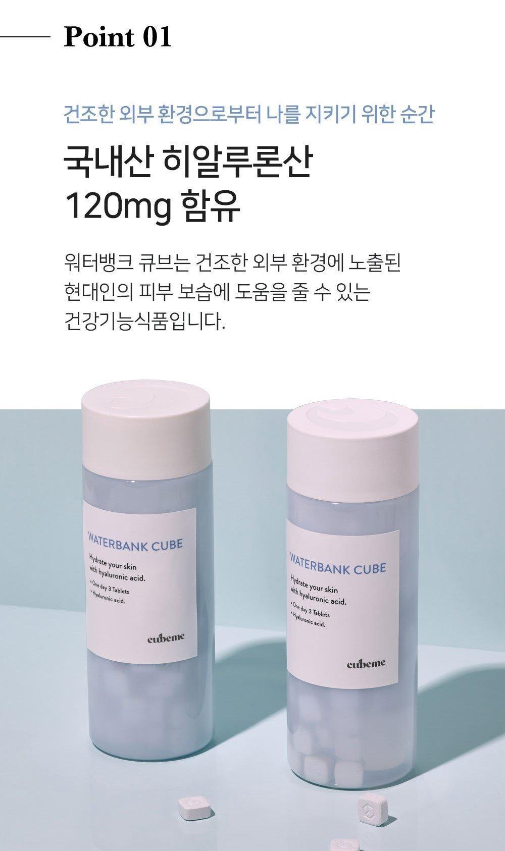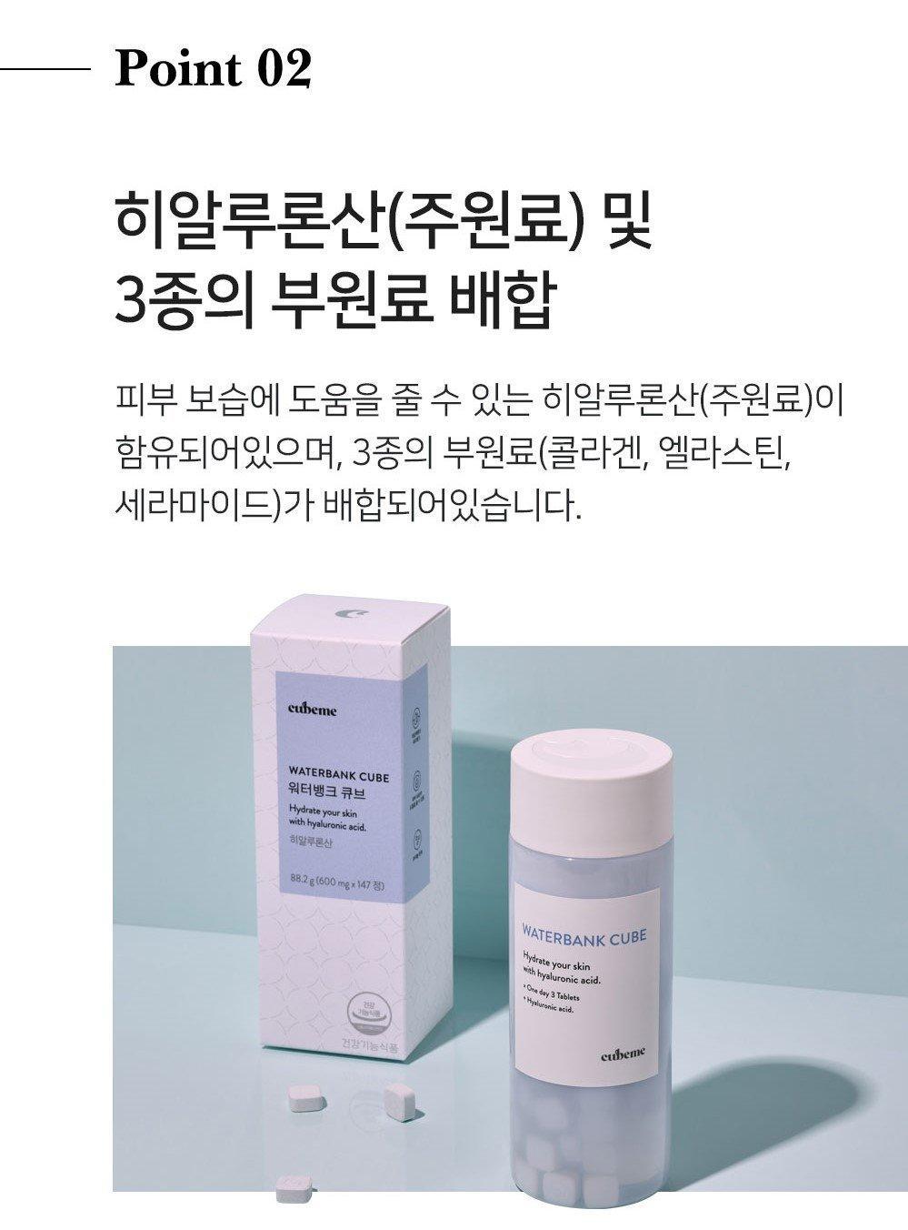 Hydrat hóa da (Axit Hyaluronic): Waterbank Cube chứa Axit Hyaluronic, một thành phần quan trọng của da, là thành phần chức năng chính cùng với một số thành phần phụ (collagen, elastin và ceramide).