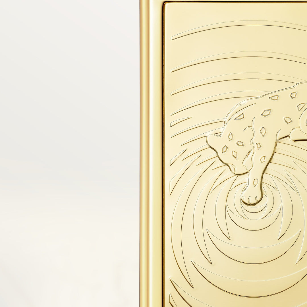 Bản thân vỏ máy là một kiệt tác của nghề thủ công, nổi bật với những đường nét bóng bẩy và những đường cong mượt mà gợi lên cảm giác về vẻ đẹp vượt thời gian. Được làm từ những vật liệu tốt nhất, nó toát lên sự sang trọng từ mọi góc độ. Dù được trưng bày trên bàn trang điểm hay cầm trên tay, Hộp đựng La Panthère là minh chứng thực sự cho di sản xuất sắc của Cartier.