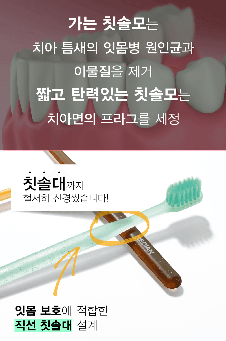 Lông chải nhọn dễ dàng thâm nhập vào giữa răng, loại bỏ dư lượng thực phẩm, lông ngắn với đầu tròn massage và đánh bóng bề mặt răng, loại bỏ mảng bám. Lông bàn chải có độ bền cao và độ đàn hồi cao.