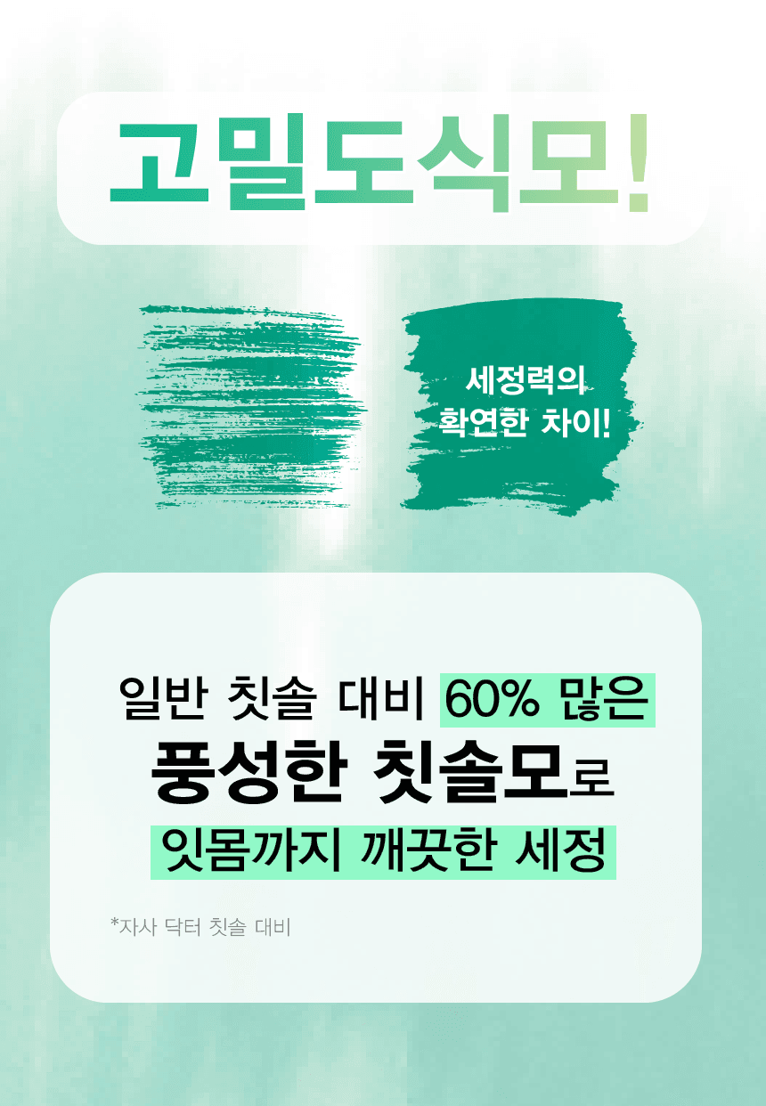 Do kích thước đầu giảm, bàn chải đánh răng có thể dễ dàng làm sạch hoặc thậm chí khó tiếp cận mà không gây khó chịu ở hàm. Lông bàn chải được ngâm trong chiết xuất tự nhiên và có tác dụng kháng khuẩn.
