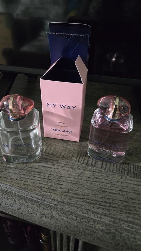 So với My Way Eau de Parfum cổ điển mang phong cách hoa trắng rạng rỡ, My Way Nectar ngọt ngào và trái cây hơn. Khi đặt cạnh My Way Eau de Parfum Intense, phiên bản Nectar nhẹ nhàng, tươi sáng và ít thiên về gỗ hơn. Còn với My Way Eau de Parfum Ylang, My Way Nectar vẫn giữ được sự cân bằng tinh tế giữa hoa và trái cây, không quá nhiệt đới mà vẫn thanh lịch.