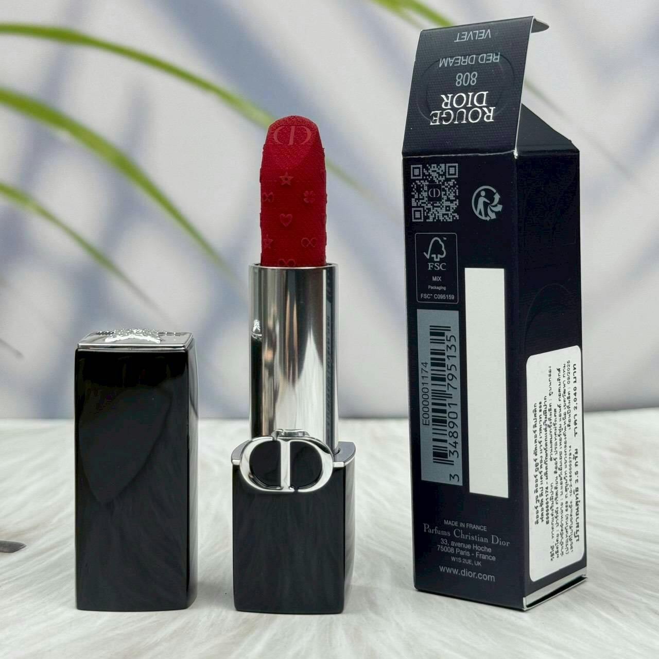 Son DIOR Rouge Dior #808 Red Dream thuộc dòng Couture Color Lipstick – Velvet Finish, mang lại hiệu ứng lì mịn như nhung. Khi thoa lên môi, son tạo cảm giác:
