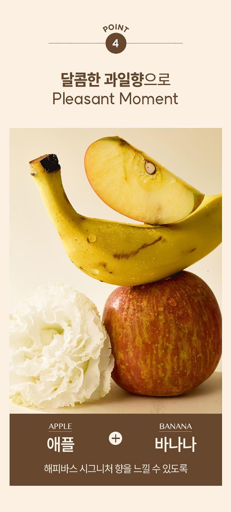 Dưỡng Thể Happy Bath Natural Body Milk Apple Banana với hương thơm trái cây ngọt ngào khoảnh khắc dễ chịu, tâm trạng sảng khoái với hương trái cây tươi mát và mùi xạ hương vani
