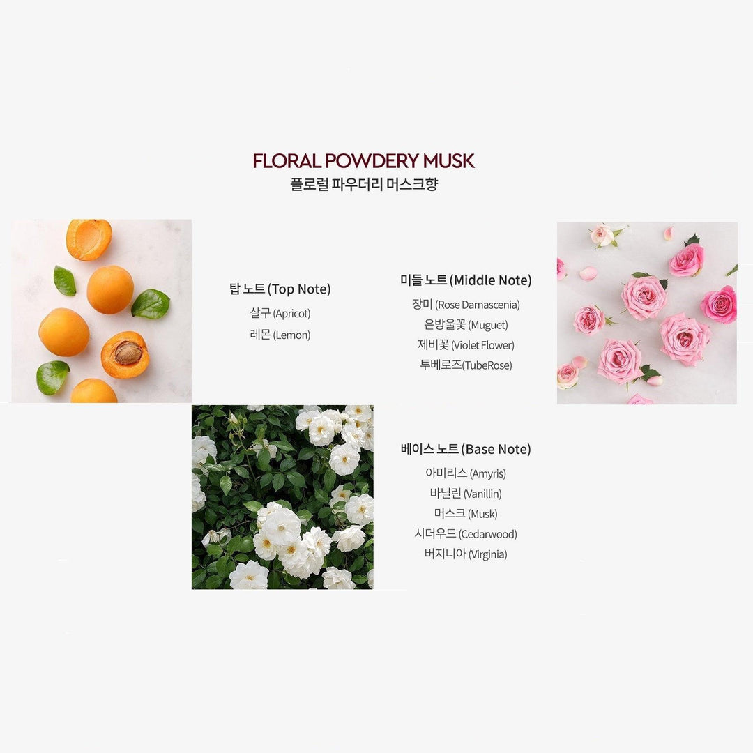 Một hương thơm thanh khiết và nồng nàn, bí ẩn và lôi cuốn với hương hoa cỏ xanh hòa quyện với hương cuối là xạ hương.