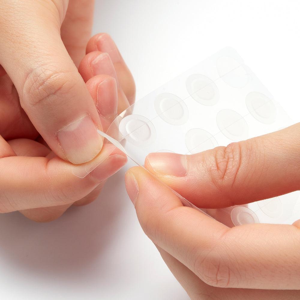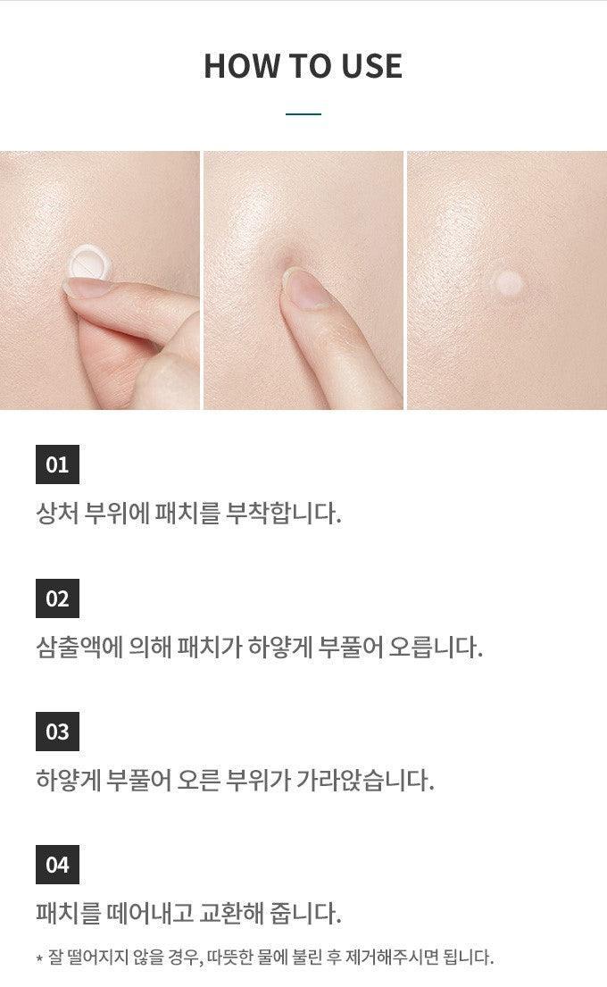 Dán miếng dán lên vết mụn. Dịch tiết ra làm cho miếng dán phồng lên màu trắng. Vùng sưng trắng giảm dần. Tháo miếng dán và thay thế.