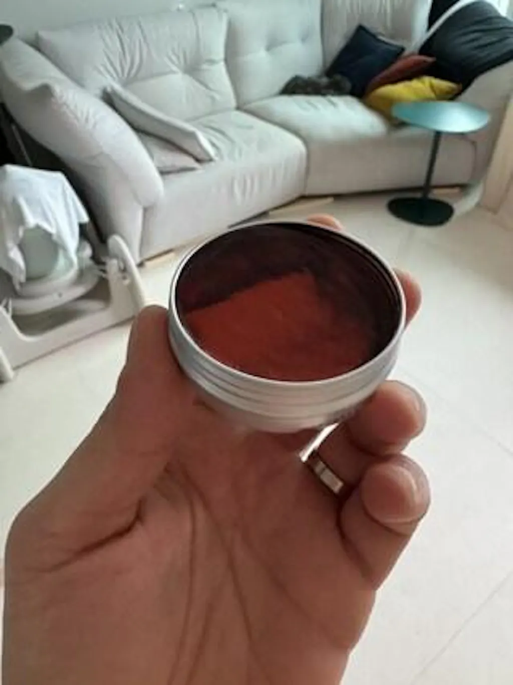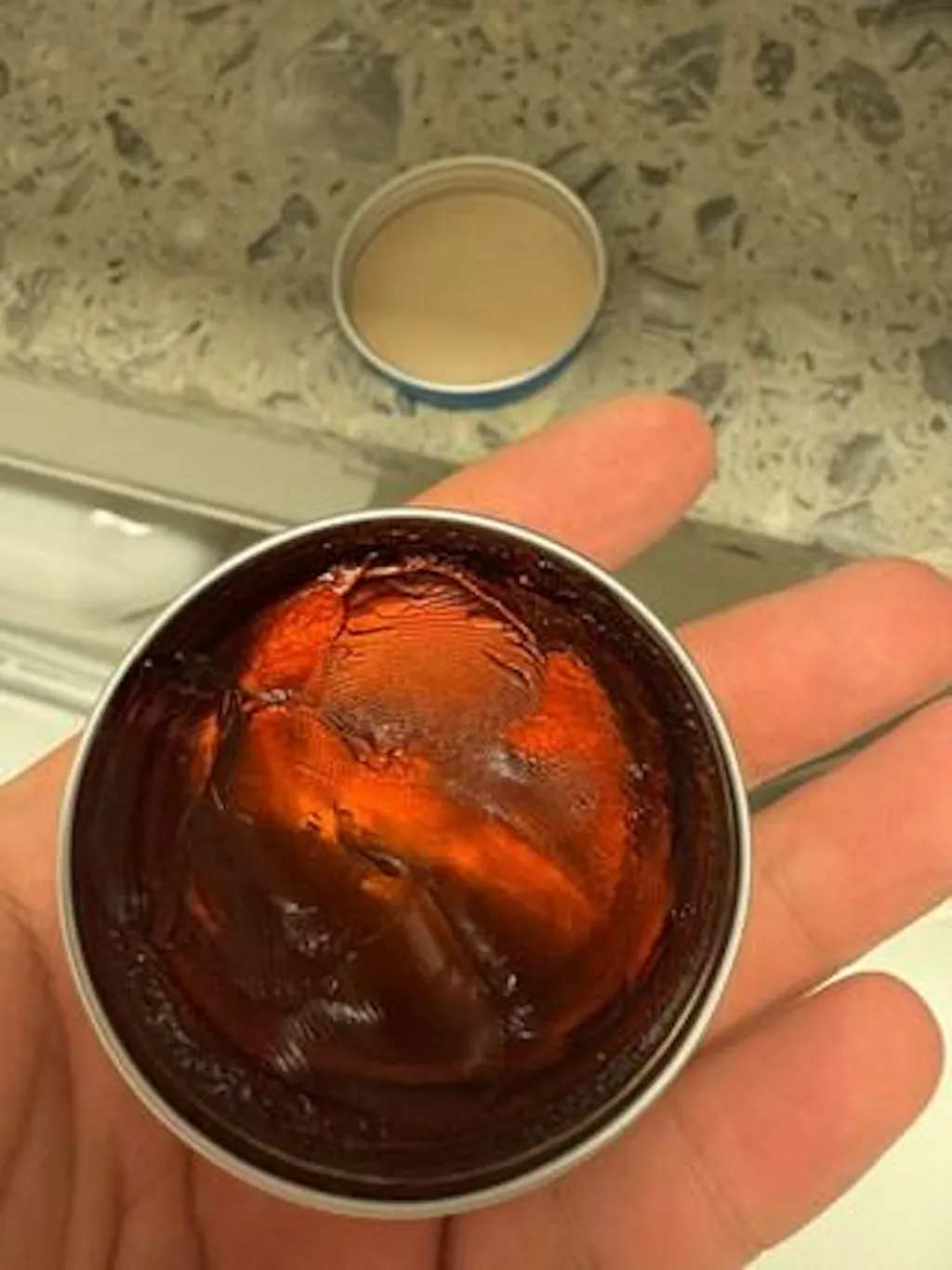 Lấy 1–2 knuckles pomade từ hộp. Vì công thức siêu cô đặc, không cần dùng quá nhiều.