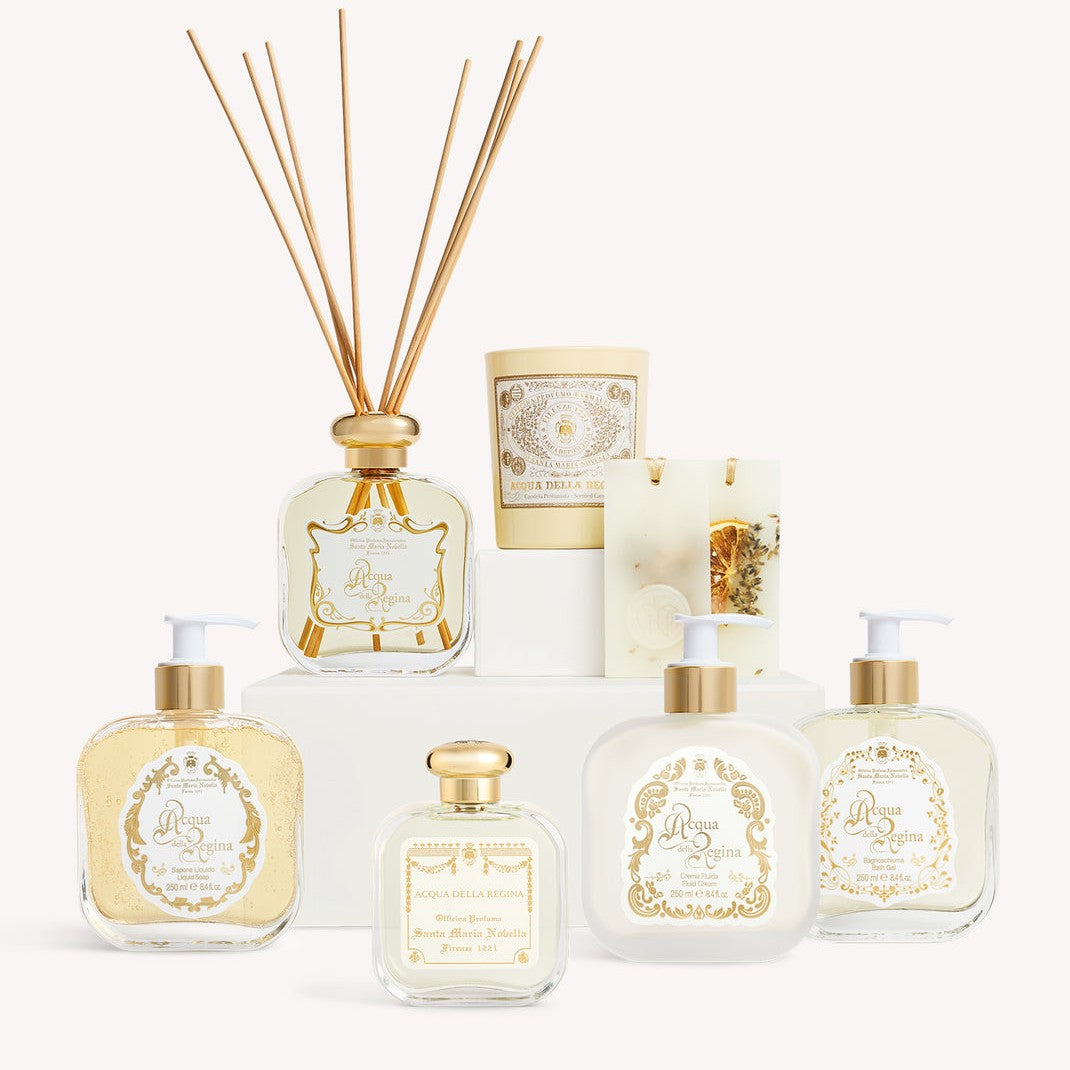 Acqua della Regina, hay còn gọi là “Nước của Nữ hoàng”, là loại nước hoa được sáng tạo vào năm 1533, khi Catherine de’ Medici rời Florence để trở thành hoàng hậu nước Pháp. Bà đã mang theo bí quyết hương thơm này như một món quà dành cho vua Henry II, từ đó trở thành biểu tượng của tình yêu, quyền lực và sự tinh tế.