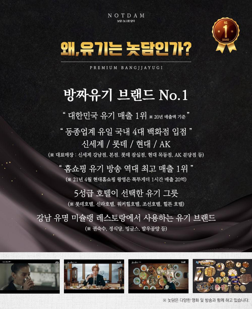 Notdam là một thương hiệu tái tạo Bangjja Yugi (Bronze) truyền thống của Hàn Quốc được thiết kế tinh tế để phù hợp với hiện đại. Từ "Bangjja" đề cập đến một từ vựng được sử dụng để xác định hỗn hợp hợp kim chất lượng tốt nhất, đó là 78% Đồng và 22% Thiếc. Do thành phần độc đáo của nó, nhiều nghiên cứu cho thấy Bangjja Bronzeware được biết là tự khử trùng và tiêu diệt virus gây bệnh.