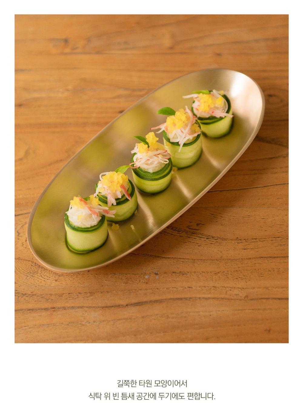 Đĩa dài theo chiều ngang và có chiều sâu thích hợp, vì vậy sản phẩm có thể được sử dụng theo nhiều cách khác nhau chỉ với một đĩa bầu dục. Bởi vì nó có dạng hình bầu dục thuôn dài nên rất tiện lợi khi đặt ở không gian trống phía trên bàn.