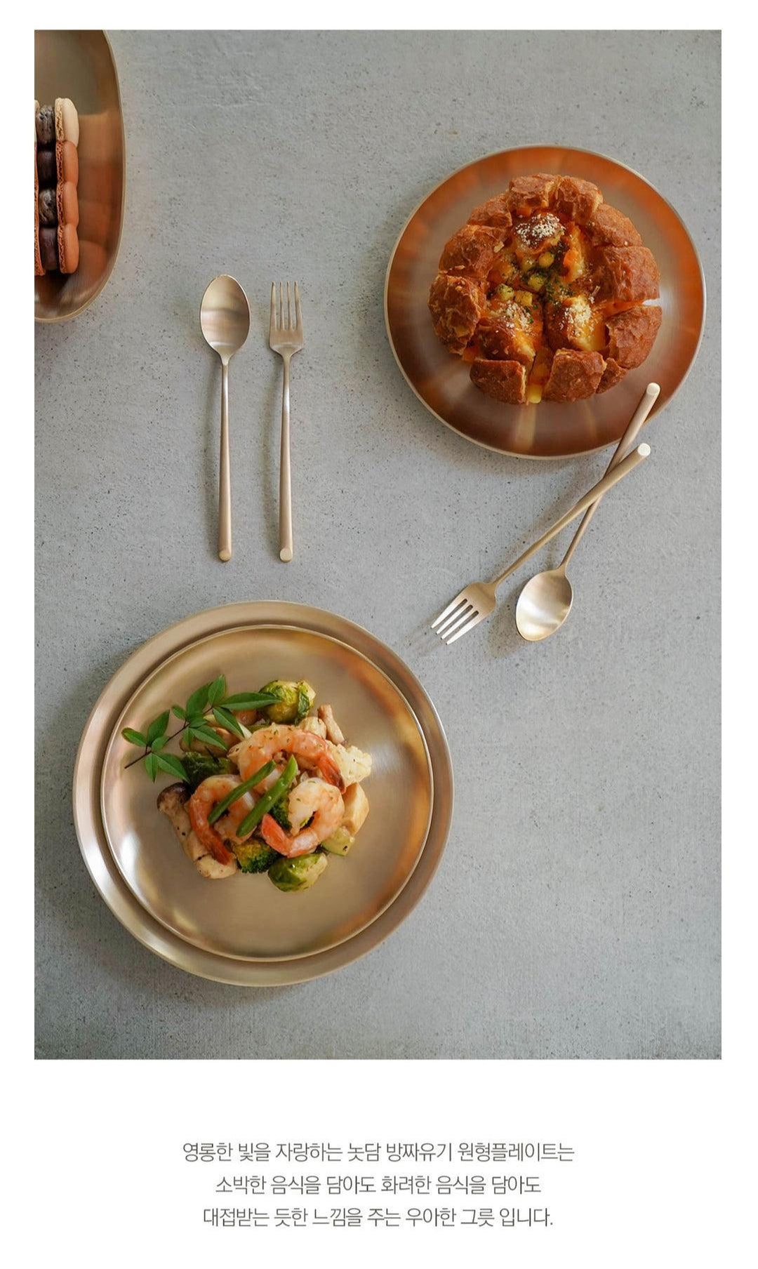Đĩa tròn Notdam Bangjja Yugi khiến bạn càng muốn dùng nó hơn nữa nếu nó là món ăn dành cho khách vào một ngày đặc biệt. Chúng tôi tạo ra một bàn ăn tốt nhất bằng cách thêm sự chân thành của Notdam vào sự chân thành của món ăn. Đĩa tròn Notdam Bangjja Yugi được làm bằng kỹ thuật rèn nóng kết hợp 78% đồng và 22% thiếc.