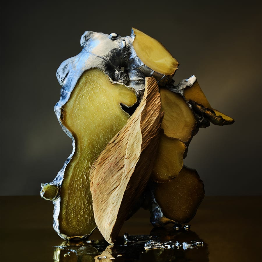 Khi hương thơm phát triển, hương giữa nổi lên, cho thấy một hương vị phong phú hơn, sâu sắc hơn. Ở đây, tinh chất gỗ đàn hương chiếm vị trí trung tâm. Nổi tiếng với đặc tính kem và gỗ, gỗ đàn hương mang đến sự ấm áp nhẹ nhàng bao trùm các giác quan. Sự chuyển đổi này từ gừng tươi sang gỗ đàn hương đất tượng trưng cho tính hai mặt của pyrit — sự mát mẻ của đá kết hợp với lõi bốc lửa của nó. Sự hài hòa giữa tươi sáng và ấm áp này tạo ra một trải nghiệm khứu giác quyến rũ phát triển đẹp đẽ theo thời gian.