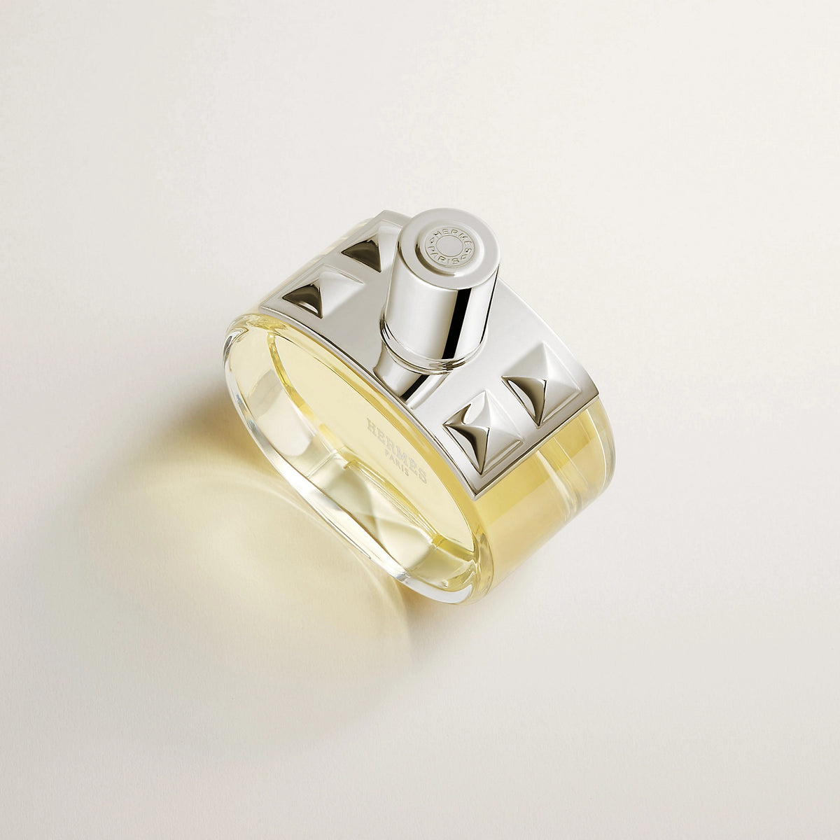 Chai nước hoa HERMÈS Barénia Eau de Parfum #100 mL, được thiết kế bởi Philippe Mouquet, là một tác phẩm nghệ thuật giống như hương thơm mà nó chứa đựng. Lấy cảm hứng từ chiếc vòng tay Collier de Chien mang tính biểu tượng, chai có sự tương tác độc đáo giữa sức mạnh và sự tinh tế. Các đinh tán hình kim tự tháp hình vòm tương phản đẹp mắt với các đường cong hình elip nhẹ nhàng, tạo nên một thiết kế bắt mắt.