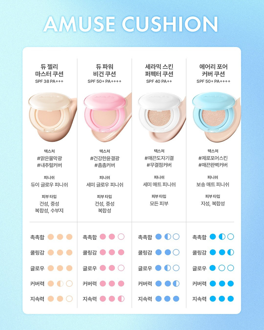 Da cực kỳ khô (nên dùng dòng dewy glow như AMUSE Dew Jelly Cushion)