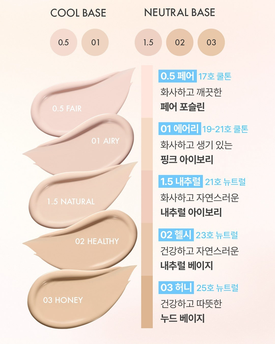 | 01 | Airy | 19-21 - Cool | Hồng ngà |