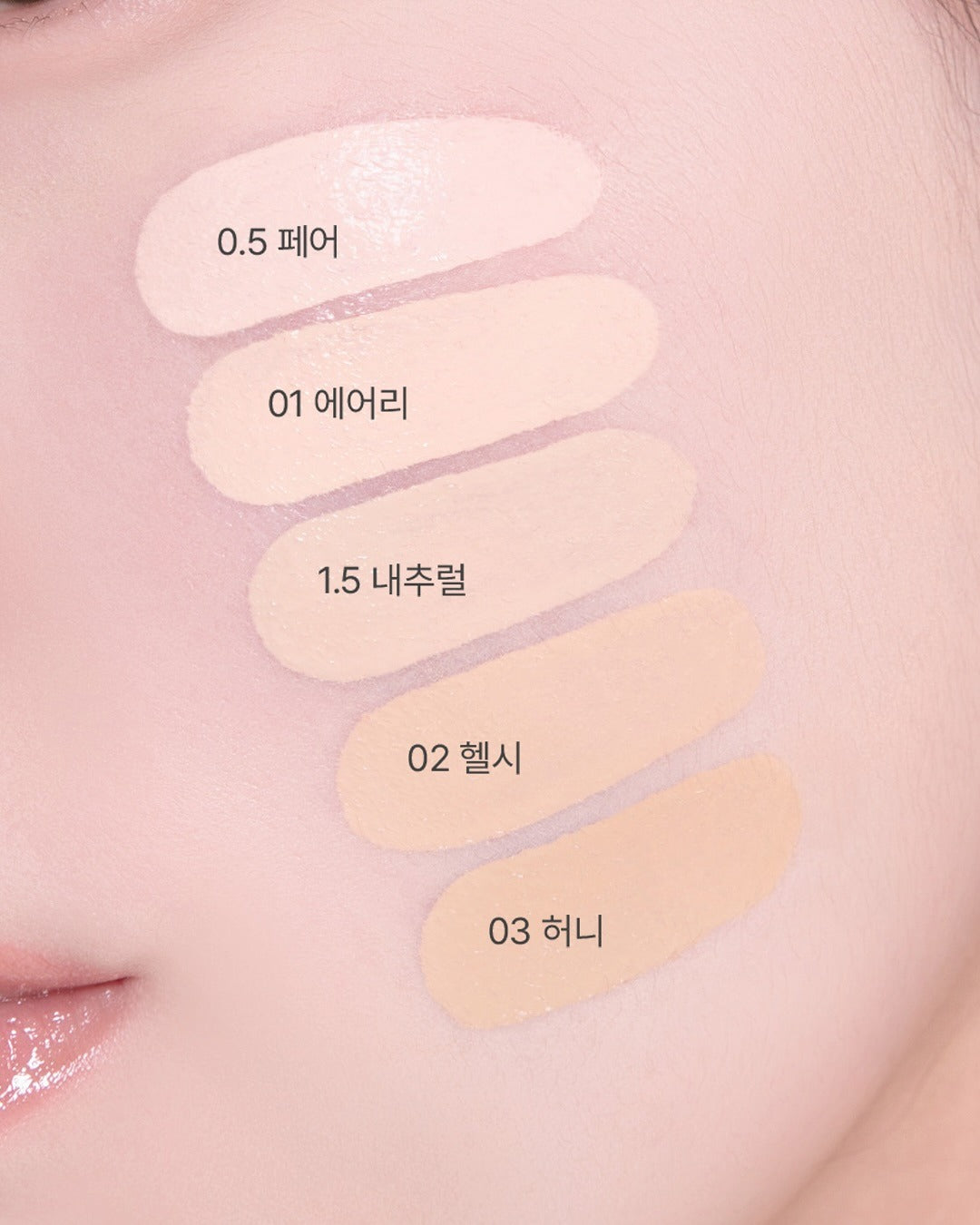 [Amuse Airy Pore Cover Cushion 02 Healthy] Purified Water, Titanium Dioxide, Dimethicone, Methyl Trimethicone, Butylene Glycol, Trimethylsiloxysilicate, PEG-10 Dimethicone, Dibutyl Adipate, Iron Oxides (CI 77411), Niacinamide, Dimethicone/Vinyl Dimethicone Crosspolymer, Trisiloxane, PEG/PPG-18/18 Dimethicone, Aluminum Hydroxide, Triethoxycaprylylsilane, Magnesium Sulfate, Propanediol, Caprylyl Methicone, Stearic Acid, Iron Oxides (CI 77411), Polypropylsilsesquioxane, Lauryl PEG-9 Polydimethylsiloxyethyl Dimethicone, Caprylic/Capric Triglyceride, Caprylyl Glycol, Polyhydroxystearic Acid, Vinyl Dimethicone/Methicone Silsesquioxane Crosspolymer, Glyceryl Caprylate, Iron Oxides (CI 77411), Disteardimonium Hectorite, Fragrance, Polysorbate 80, Ethylhexylglycerin, Hydrogenated Lecithin, Trisodium Ethylenediamine Disuccinate, Aloe Barbadensis Leaf Extract, Isostearic Acid, Adenosine, Silica, Lecithin, Polyglyceryl-3 Polyricinoleate, Glycerin, 1,2-Hexanediol, Panthenol, Menthol (Watermint) Extract, Laureth-4, Rice Extract, Sodium DNA, Dimethylsilanol Hyaluronate, Hydrolyzed Hyaluronic Acid, Hydrolyzed Sodium Hyaluronate, Hyaluronic Acid, Potassium Hyaluronate, Pyridoxine, Sodium Hyaluronate, Thiamine HCL, Hydroxypropyltrimonium Hyaluronate, Sodium Hyaluronate Crosspolymer, Sodium Hyaluronate Dimethylsilanol, Tocopherol, Sodium Acetylated Hyaluronate, Ascorbic Acid, Bioflavonoids, Carnitine, Cyanocobalamin, Folic Acid, Niacin, Acetyl Hexapeptide-8, Acetyl Octapeptide-3, Copper Tripeptide-1, Palmitoyl Pentapeptide-4, Palmitoyl Tetrapeptide-7, Palmitoyl Tripeptide-1, Tripeptide-1, Tripeptide-2, Tripeptide-3