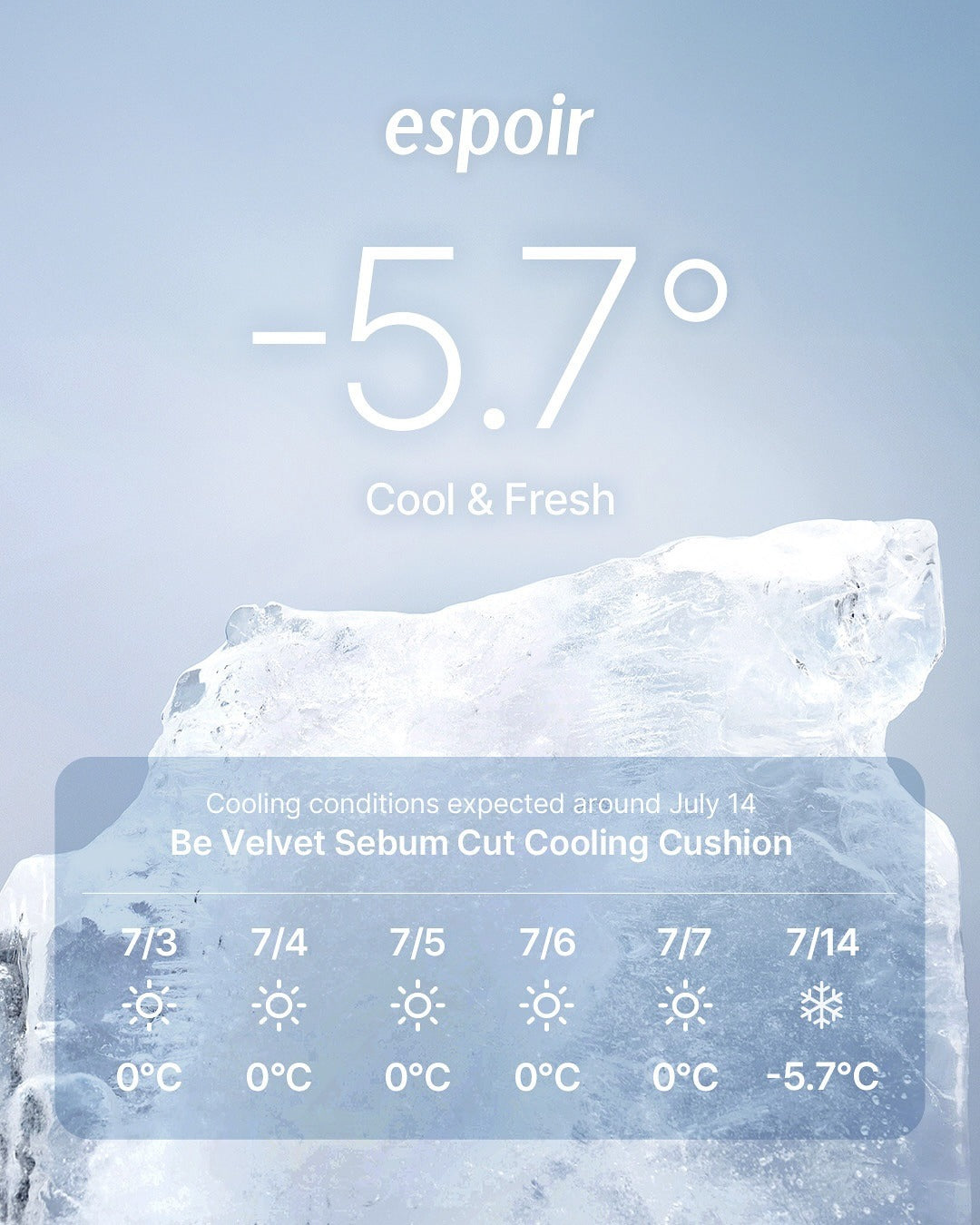 Hiệu ứng làm mát mạnh mẽ -5.7°C cho làn da đang nóng bừng