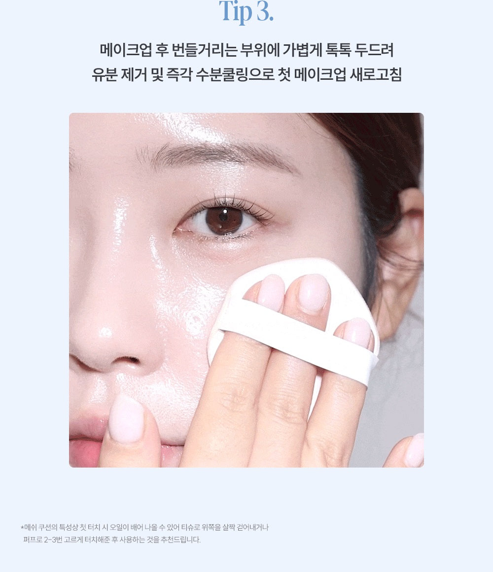 Với những vùng dễ tiết dầu như vùng chữ T, cánh mũi, hãy dặm lại cushion sau vài giờ để giảm bóng dầu và tái tạo lớp nền mà không cần tẩy trang lại.