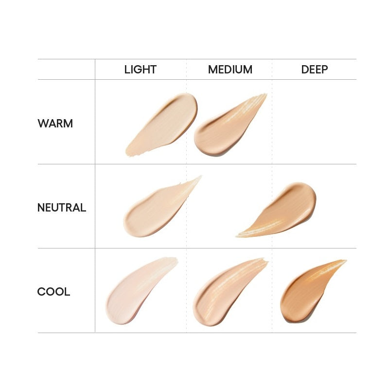 Laneige Neo Cushion Mewy cung cấp 6 lựa chọn tông màu chia theo undertone (cool – neutral – warm) và mức độ sáng (light – medium):