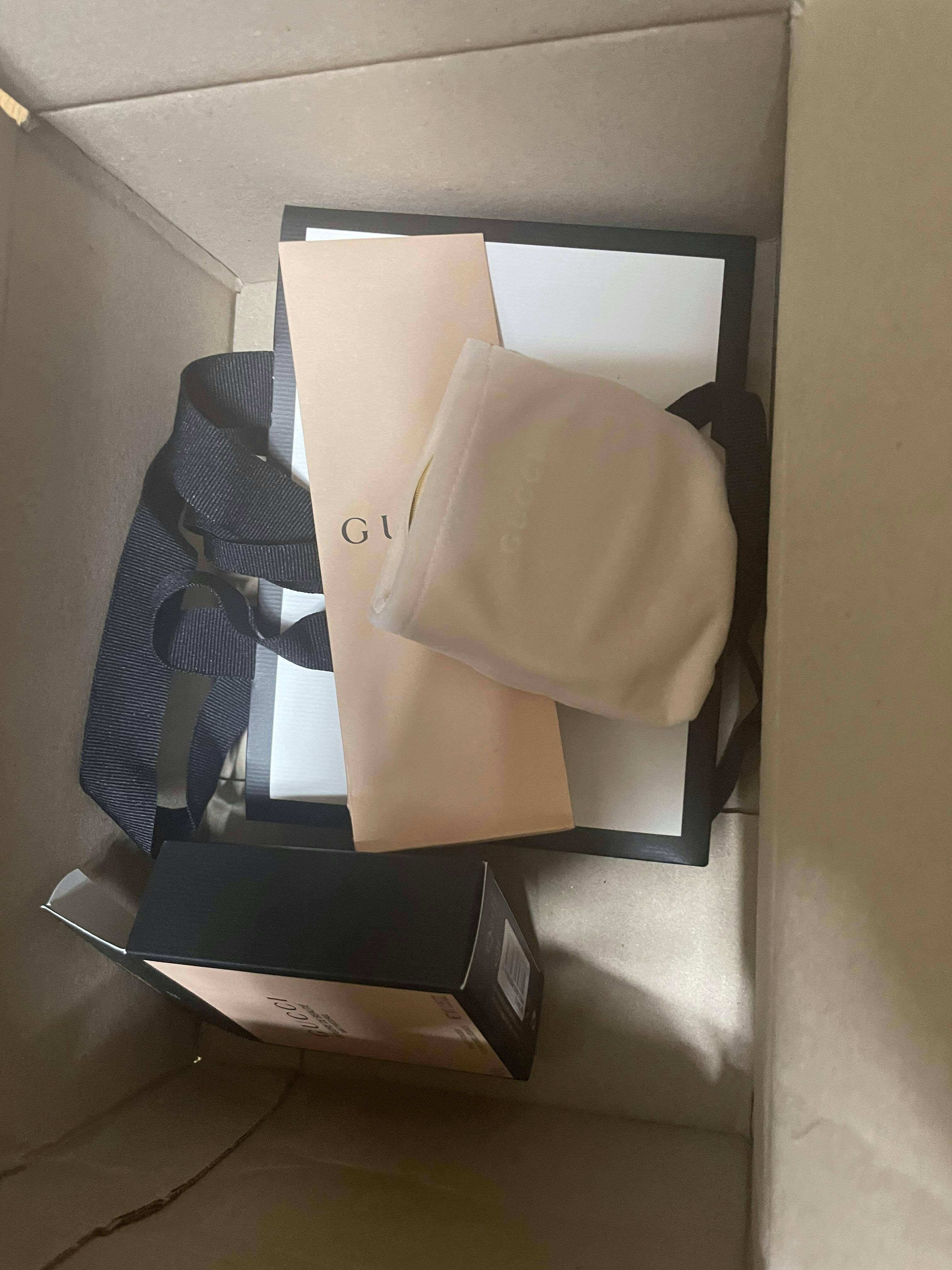 Tất cả các đơn hàng Gucci đều được gói quà miễn phí, bao gồm hộp quà đặc trưng của Gucci được buộc bằng ruy băng satin Gucci hoặc túi quà sang trọng. Hộp quà Gucci chỉ có sẵn cho các sản phẩm có kích thước 45 cm x 45 cm x 20 cm trở xuống. Bạn cũng có thể thêm thông điệp cá nhân và ẩn giá trị sản phẩm trên hóa đơn.
