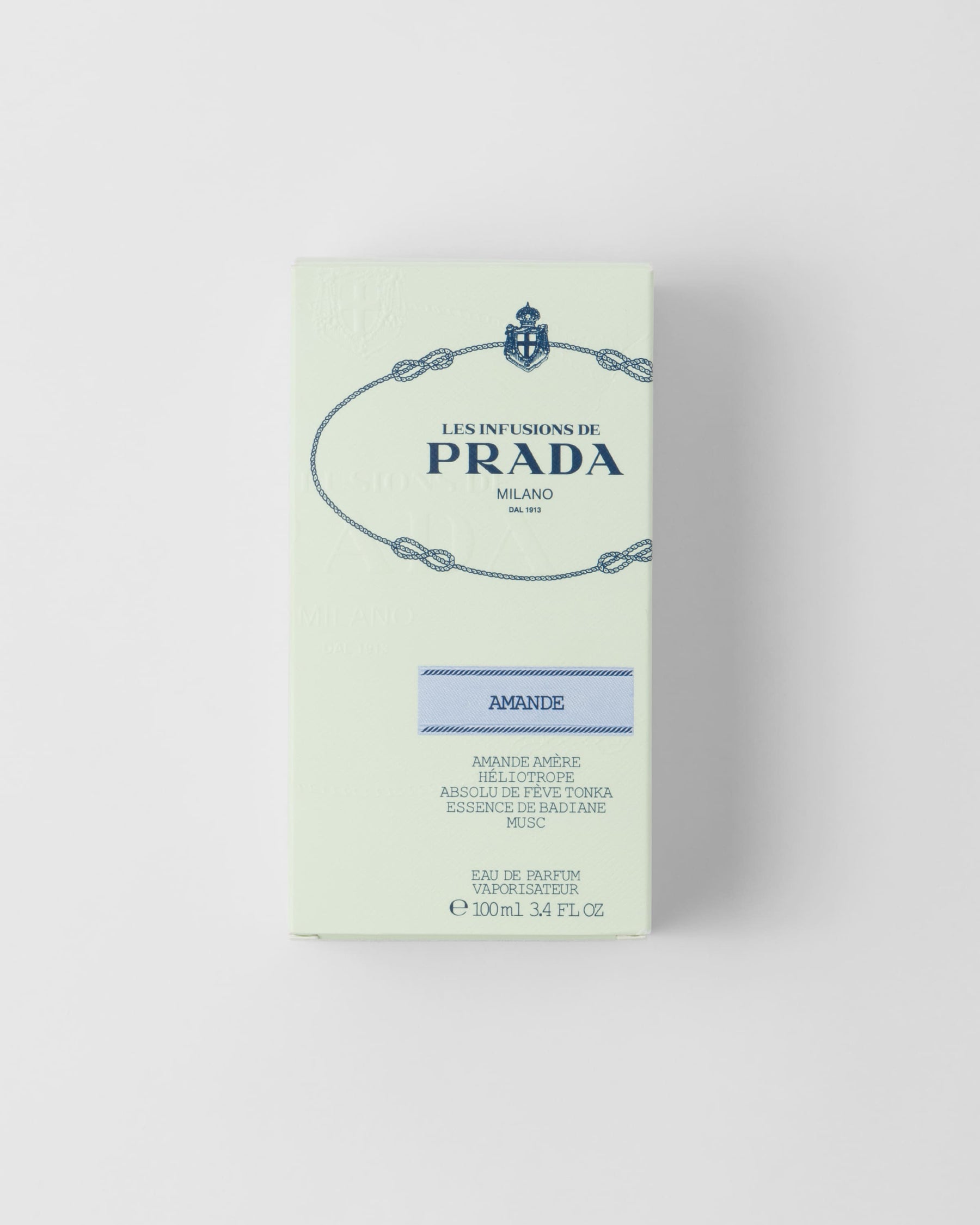 Ý tưởng của "Les Infusions" là tạo ra một loại nước hoa PRADA Infusion d’Amande Eau de Parfum #100 mL có thể nhận biết ngay lập tức nhưng vẫn thân thiết với bạn. Đó là một mùi hương không quá nồng mà còn tăng cường, cho phép cá tính của người mặc tỏa sáng. Chai sang trọng, với thủy tinh màu xanh lam và nắp màu xanh dịu dàng được làm bằng da Saffiano mang tính biểu tượng, là sự thể hiện trực quan và xúc giác cho đặc tính của nước hoa. Nó tượng trưng cho sự kết hợp của thành phần đặc trưng—hạnh nhân—với người sử dụng, phản ánh bản chất tinh tế của mùi hương bên trong.