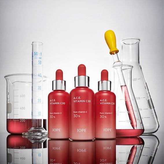 Tinh Chất IOPE A.C.E. Vitamin C30 màu đỏ chống lão hóa cường độ cao chứa 30% vitamin C nguyên chất phục hồi làn da đàn hồi và căng.