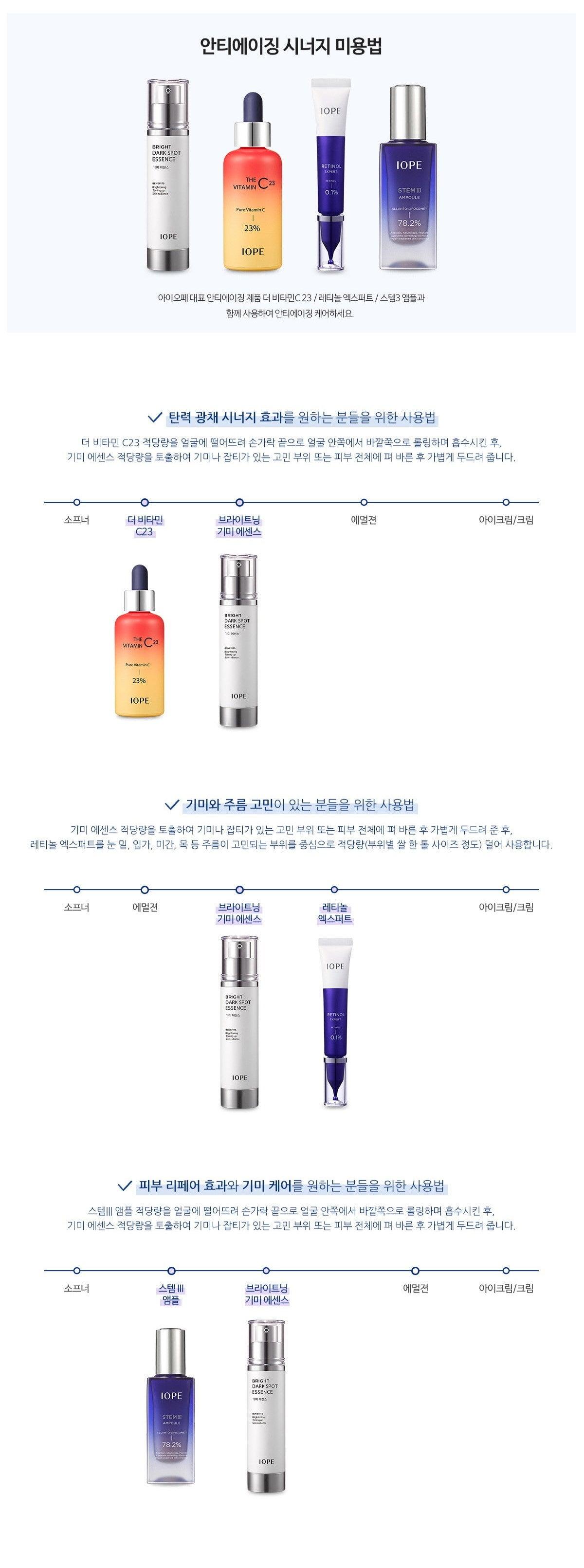 Không chỉ có hiệu quả lâu dài, IOPE Bright Dark Spot Essence còn giúp cải thiện tức thì các yếu tố như: