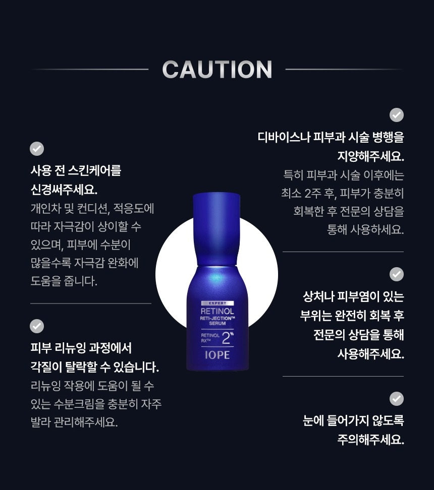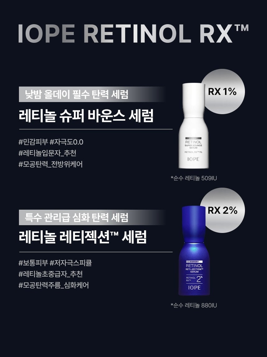 Đối với người mới bắt đầu, IOPE cũng có phiên bản Retinol RX™ 1% dịu nhẹ hơn, thích hợp để làm quen trước khi nâng cấp lên IOPE Retinol Expert Retinol Retijection Serum 2%.