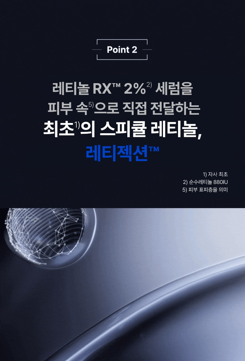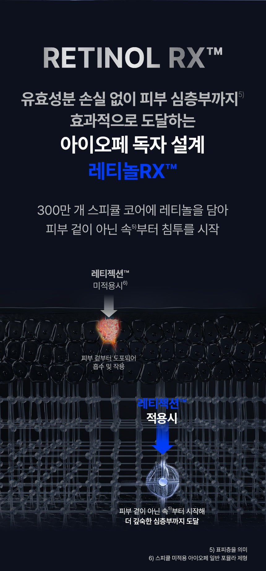 Điểm nổi bật của sản phẩm chính là công nghệ Retijection™M, một hệ thống dẫn truyền Retinol hoàn toàn mới. Thay vì để hoạt chất chỉ nằm trên bề mặt da, IOPE đã sử dụng 300 triệu spicule siêu nhỏ chứa Retinol RX™ 2%, giúp thẩm thấu sâu hơn 46% vào lớp biểu bì so với công thức thông thường.