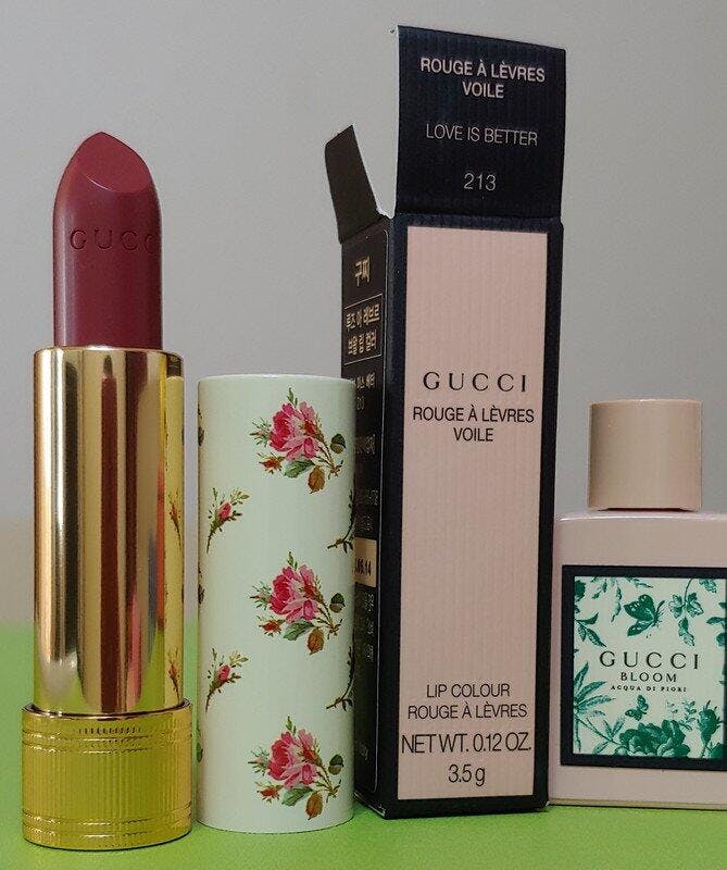 Nếu bạn đang tìm kiếm một loại son môi mang lại cho bạn màu sắc tươi sáng và cảm giác dưỡng ẩm, bạn có thể muốn xem Son môi GUCCI Rouge à Lèvres Voile Lipstick #213 Love Is Better của Gucci. Những thỏi son này được lấy cảm hứng từ sự quyến rũ và sang trọng của thời kỳ hoàng kim của Hollywood, với các sắc thái được đặt tên theo các bộ phim và nhân vật mang tính biểu tượng. Bao bì cũng rất đẹp, với vỏ màu vàng và bìa in hoa hồng khiến tôi liên tưởng đến phong cách trang điểm cổ điển.