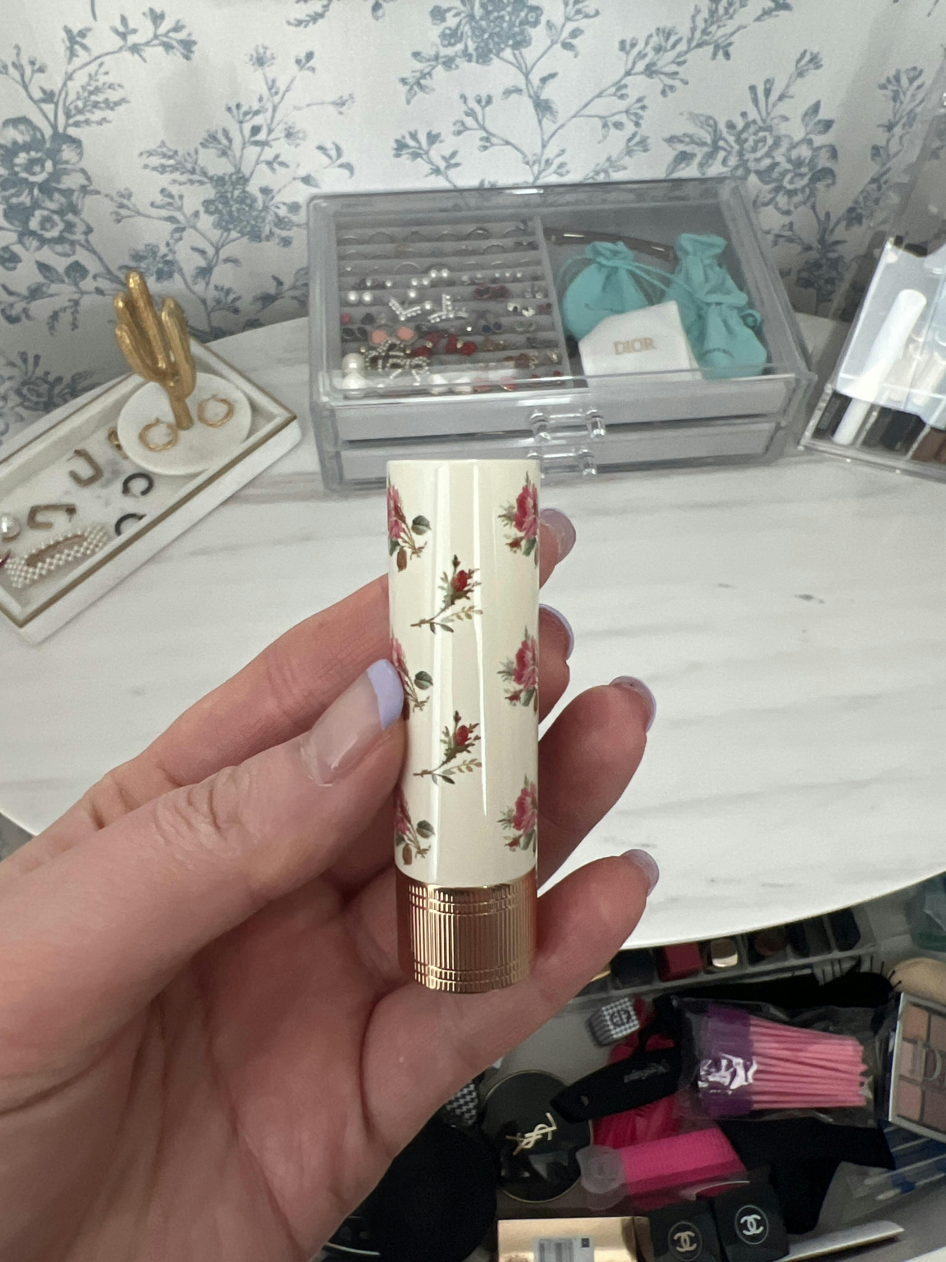 Một trong những sắc thái khiến tôi chú ý là 502 Eadie Scarlet, một màu đỏ tươi tuyệt đẹp phù hợp với mọi tông da. Màu này được đặt theo tên của Eadie Adams, một ca sĩ và vũ công hư cấu trong bộ phim hài ca nhạc "Ziegfeld Girl" năm 1941. Cô do Lana Turner thủ vai, người nổi tiếng với mái tóc vàng nổi bật và đôi môi đỏ. Tôi thích cách son môi này mang lại cho tôi màu sắc nổi bật mà không quá đục hoặc mờ. Son môi GUCCI Rouge à Lèvres Voile Lipstick #502 Eadie Scarlet có kết cấu mịn và dạng kem, lướt nhẹ dễ dàng và tạo cảm giác thoải mái trên môi. Nó cũng có hương thơm hoa tinh tế làm tăng thêm trải nghiệm sang trọng.