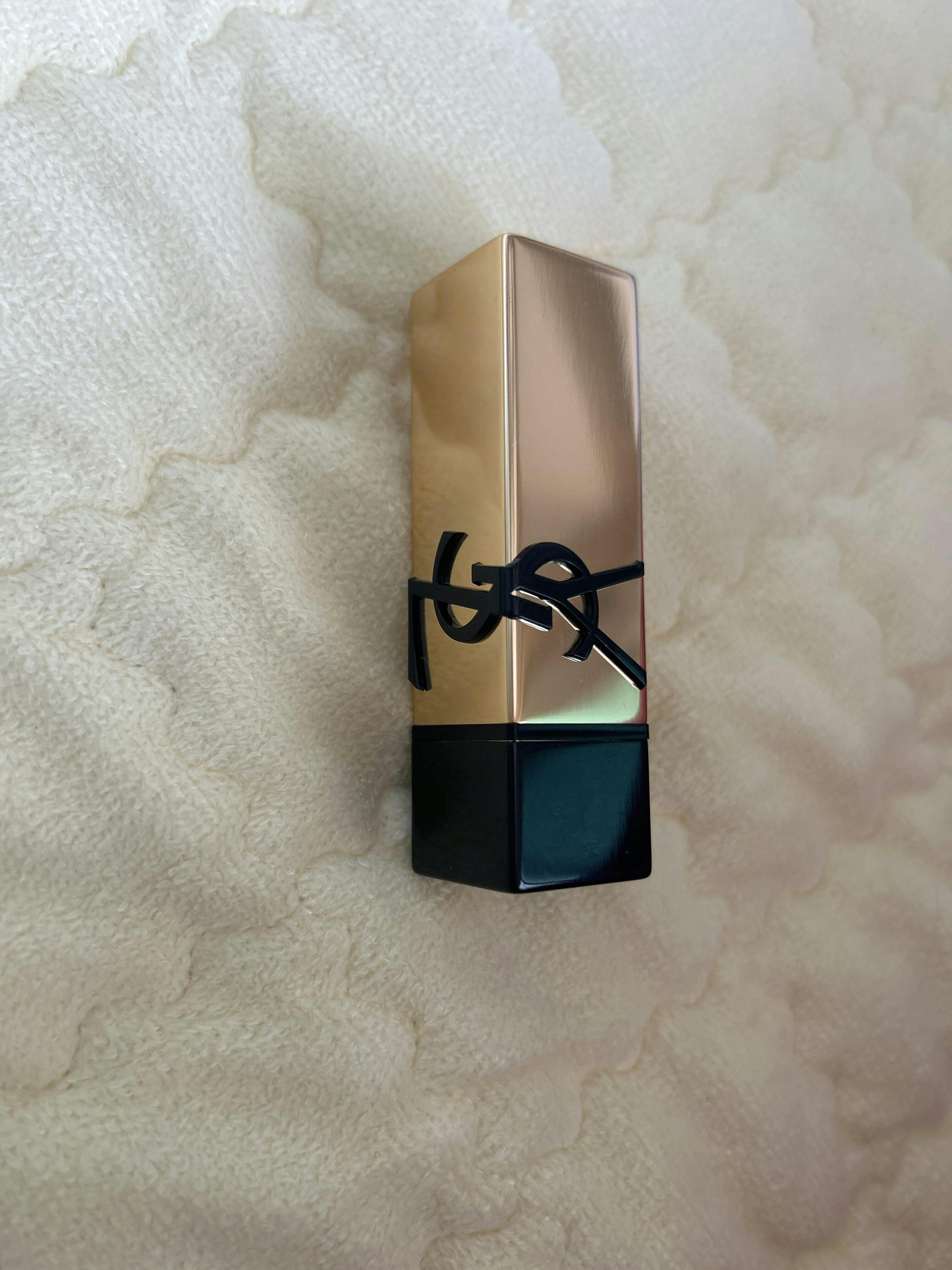 Son YSL Rouge Pur Couture #R5 Subversive Ruby vẫn giữ trọn diện mạo vàng ánh kim mang tính biểu tượng của dòng Rouge Pur Couture. Thỏi son vuông vắn, bề mặt bóng loáng với logo YSL khắc nổi tinh xảo, thể hiện sự đẳng cấp đúng chuẩn một món phụ kiện thời trang cao cấp.