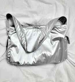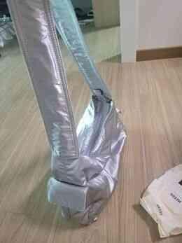 Màu silver ánh kim là điểm cộng lớn khiến chiếc túi này trở nên nổi bật. Với bề mặt hơi bóng, túi phản chiếu ánh sáng một cách tinh tế, không quá lòe loẹt nhưng đủ để tạo điểm nhấn trong tổng thể trang phục. Đây là tông màu dễ phối đồ, phù hợp với cả tông lạnh lẫn tông ấm, từ outfit streetwear đến các phong cách tối giản monochrome.